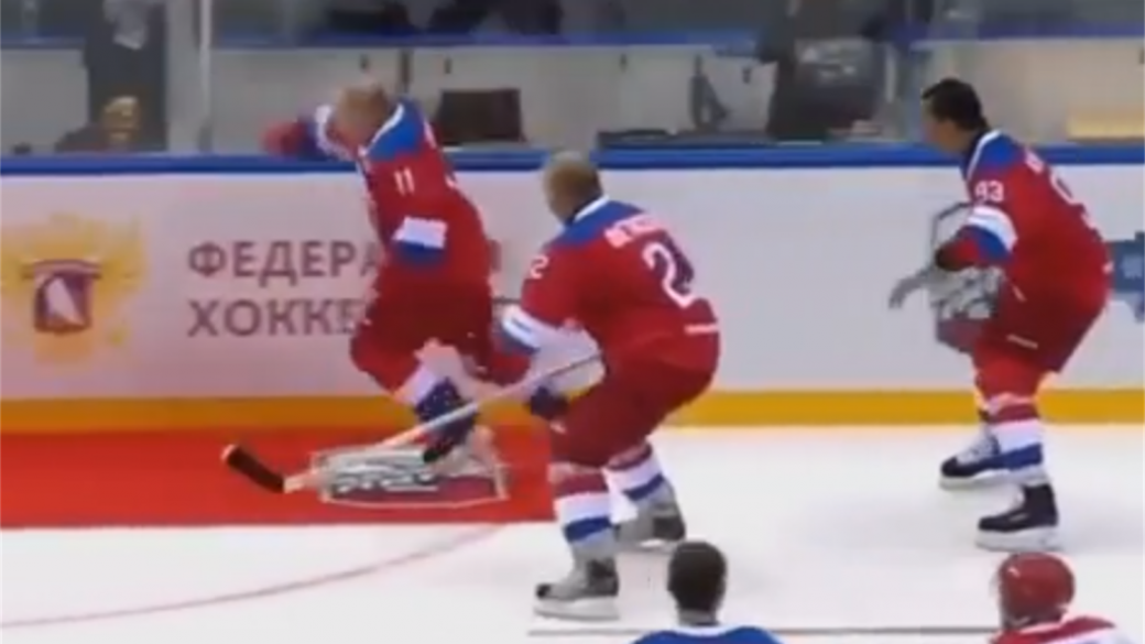 Президент Российской Федерации во время Ночной хоккейной лиги в Сочи упал на лед. Видео с падением президента России опубликовано в Twitter агентства ABCNews.