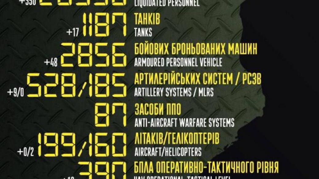 С начала полномасштабного российского вторжения в Украину общие боевые потери противника с 24.02 до 10.05 ориентировочно составили около 26 350 (+350) человек. Об этом сообщает Генштаб ВСУ.