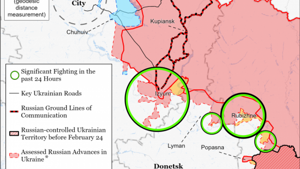 Также отмечается, что ВСУ продолжили наступление к северу от недавно освобожденного Старого Салтова, чтобы выгнать противника из нескольких населенных пунктов к северо-востоку от Харькова. При этом российские войска из района Изюма передислоцируются на север, чтобы попытаться ослабить давление украинского контрнаступления и воспрепятствовать дальнейшему продвижению ВСУ на север к границе с Россией. В Институте изучения войны добавили: