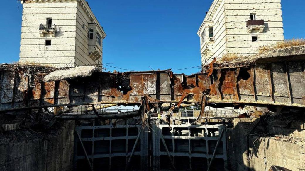 "Укргидроэнерго" опубликовало фото того, как выглядит после подрыва россиянами Каховская гидроэлектростанция. В комментарии к фото в компании уточнили:
