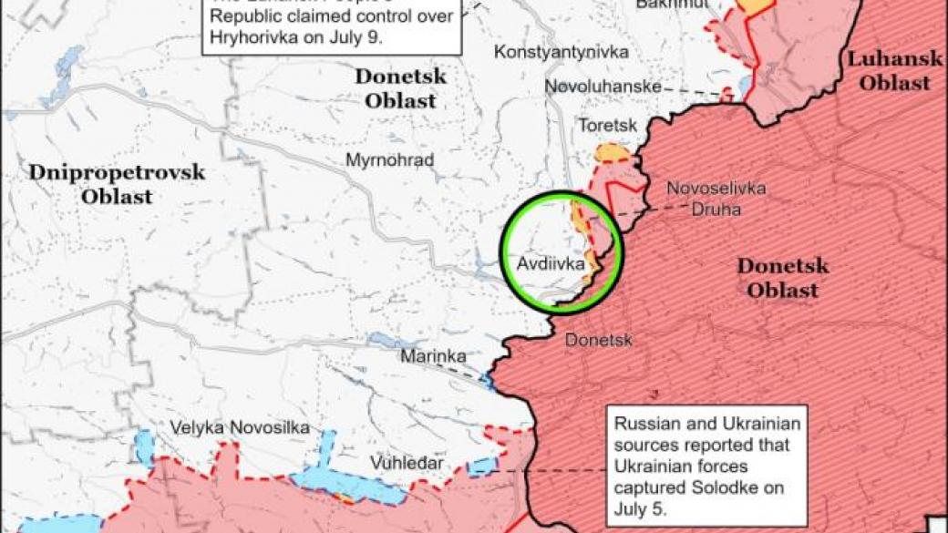 О возможной опасности окружения города в Донецкой области предупреждают аалитики американского Института исследования войны.