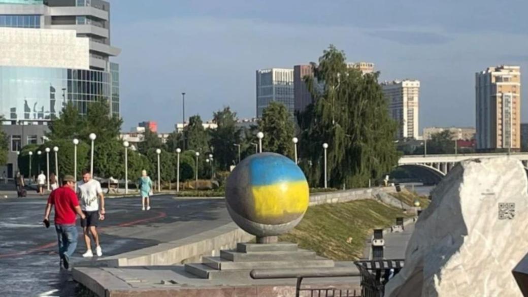 В российском городе Екатеринбурге сегодня ночью неизвестные нарисовали украинские флаги в центральной части города. Об этом сообщают местные жители в социальных сетях и публикуют соответствующие фото.