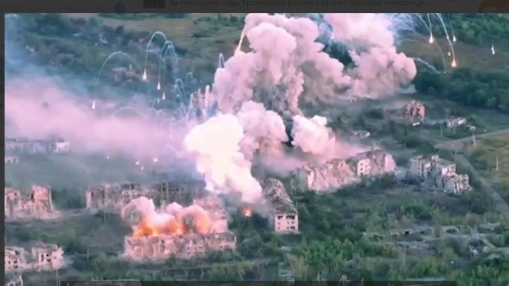 Российские войска нанесли удар по поселку Пески, расположенным под неподконтрольным Украине Донецком из установки «Солнцепек» запрещенными боеприпасами. Об этом сообщает ряд пабликов, публикуя соответствующее видео.