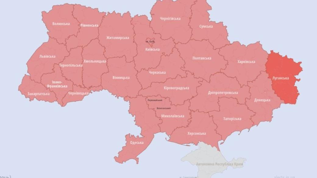 Воздушная тревога объявлена сейчас по всей Украине, кроме оккупированного Крыма.