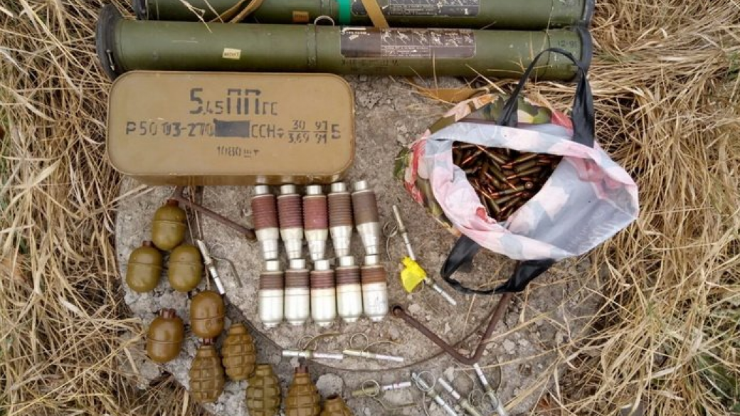 В пресс-службе СБУ сообщили: «В Донецкой области сотрудники Службы безопасности Украины обнаружили два тайника с боеприпасами и взрывными устройствами боевиков».