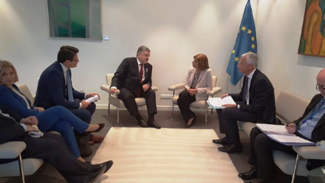 Президент Украины Петр Порошенко во время визита в Страсбург встретился с председателем ПАСЕ Стеллой Кириакидес.