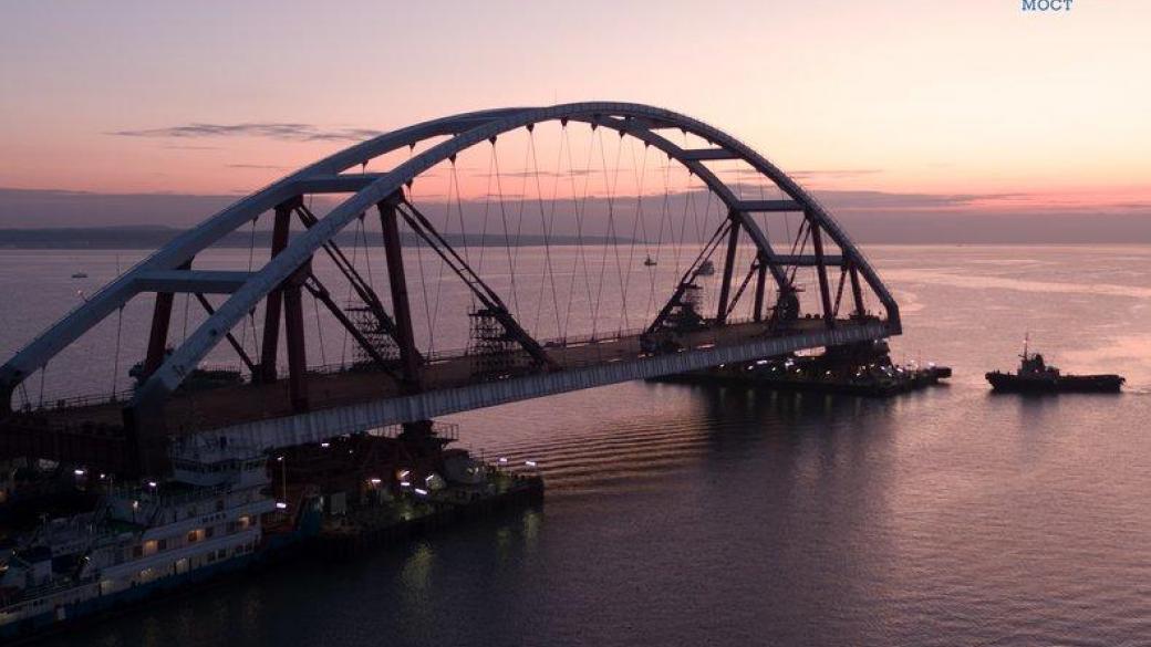 Строители моста между территорией оккупированного Крыма и РФ подвели к нему автодорожную арку и начинают ее установку.