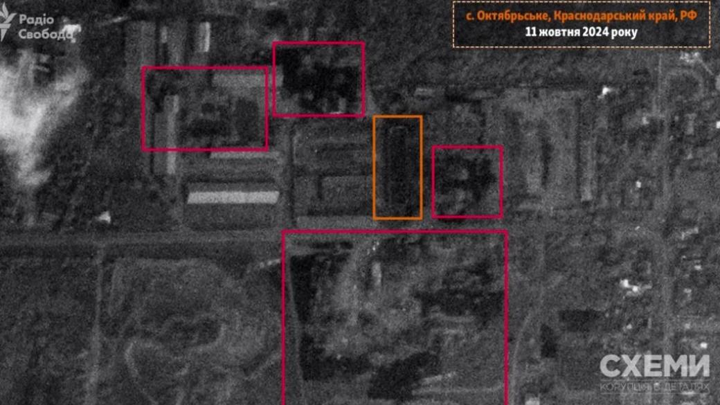 Как отмечают "Схемы", спутник зафиксировал повреждение складских зданий, в том числе разрушение крыши одного из них и следы пожара.
