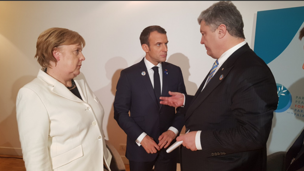 Президент Украины Петр Порошенко заявил, что договариваться с Кремлем о мире на Донбассе бесполезно, так как только миротворцы ООН могут заставить Россию выполнять взятые на себя обязательства. Об этом Порошенко заявил, подводя итоги трехсторонних переговоров с федеральным канцлером Германии Ангелой Меркель и президентом Франции Эммануэлем Макроном в Париже.