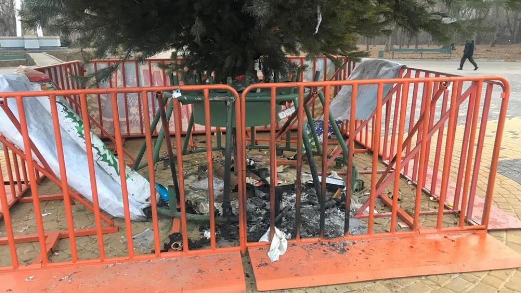 Как сообщили «чиновники», неизвестные подожгли принесенный мусор под металлическим каркасом ели, однако огонь не перекинулся на хвойное дерево, ель практически не пострадала. В «администрации» добавили: