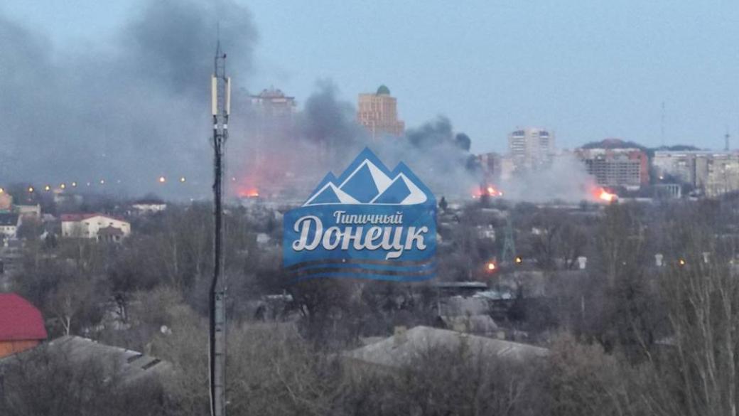 В Донецке после обстрела сильный пожар. Горит известный торговый центр