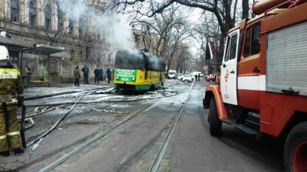 Сегодня в Одессе загорелся трамвай, следовавший по маршруту № 28, в результате чего, пострадала одна женщина.