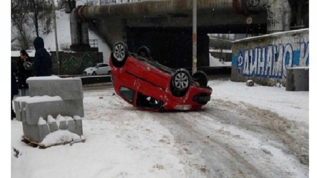 В Киеве в субботу, 12 января, автомобиль снес ограждение, вылетел с дороги и перевернулся. Об этом сообщает Информатор.