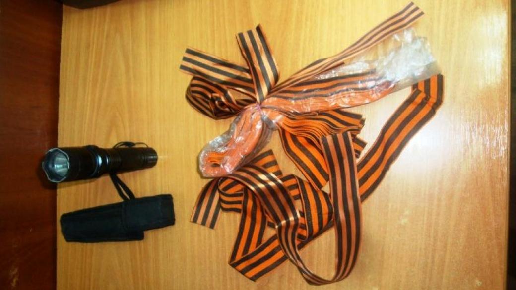 В пресс-центре Госпогранслужбы сообщили, что в салоне автомобиля «Дачия-Логан» ехавший в Украину молдаванин вез пакет с 25 георгиевскими лентами. Пограничники отмечают: «Кроме лент, в ходе проверки пограничники обнаружили у молдаванина фонарь со встроенным электрошокером. Сам гражданин пояснил пограничникам, что ленты ему якобы подарили в России во время проведения акции, однако он забыл их выложить. О найденных предметах проинформированы правоохранительные органы в Черновицкой области».