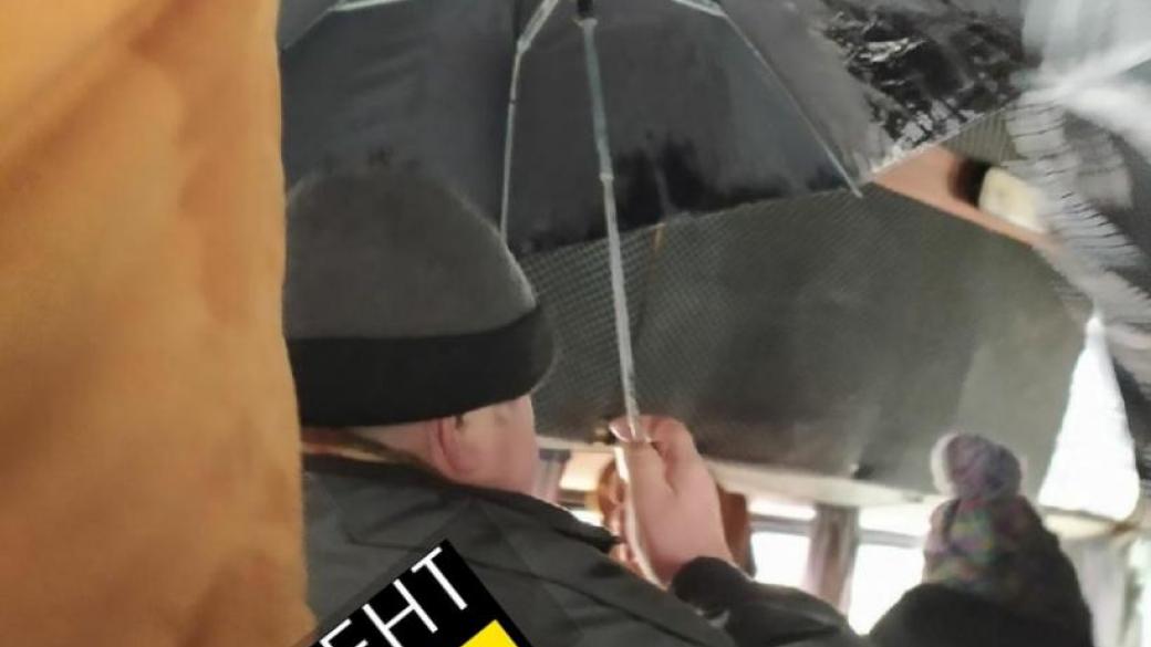 «Крыша протекает, из-за этого сиденья все мокрые. Люди вынуждены ехать стоя, либо с зонтиком (как этот находчивый мужчина).Пенсионеры садились на мокрые сидения, так как стоять им сложно. Ужасное отношения к людям. Как можно было пустить на маршрут такой транспорт».