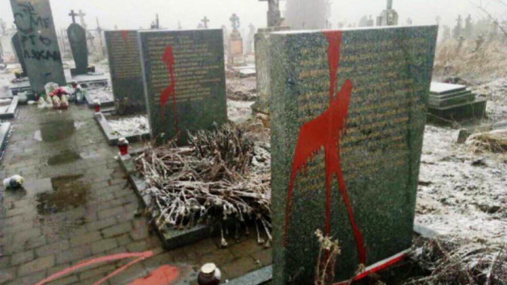 Во Львовской области неизвестные вандалы осквернили памятники погибшим полякам, разрисовав их краской.