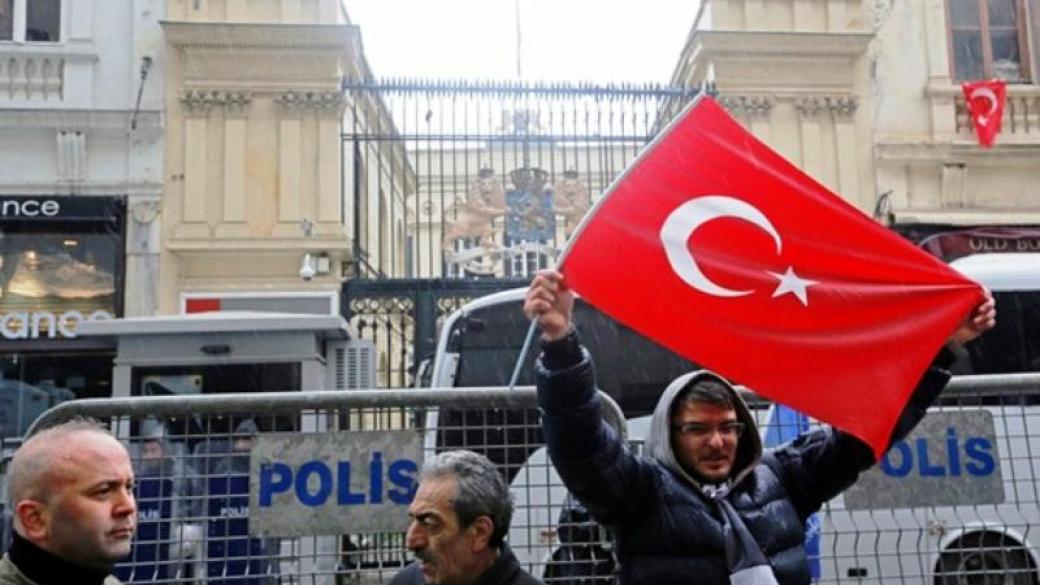 В Стамбуле протестующие сорвали с консульства Нидерландов флаг королевства и заменили его турецким.