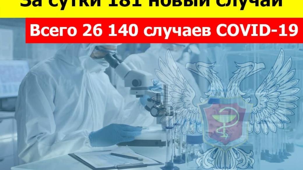 За последние сутки в ОРДО выявлено 181 случай заболевания COVID-19. Об этом сообщает так называемый «минздрав ДНР».