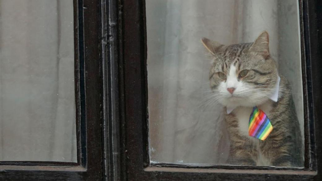 В Посольстве Эквадора рассказали журналистам о судьбе кота, арестованного Джулиана Ассанжа, по кличке Мичи.