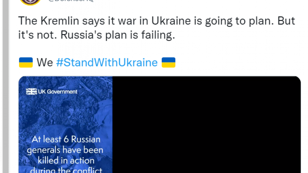 В Минобороны Великобритании высмеяли слова президента РФ Владимира Путина о том, что так называемая «спецоперация» России в Украине «идет по плану». Об этом сообщается в Twitter Минобороны Британии.