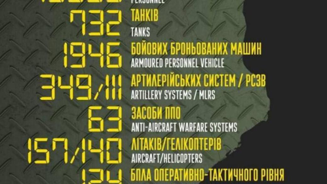 Россия за сутки потеряла в Украине почти 500 военных, самолет, вертолет и десятки танков