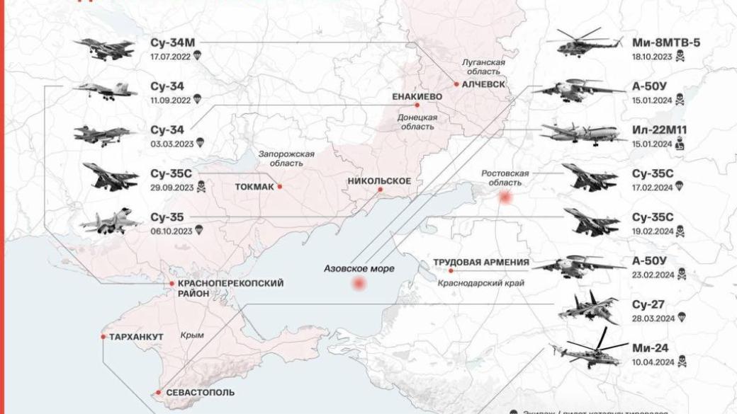 Как отмечает издание, большинство случаев произошло с начала 2024 года. По итогу рф потеряла: