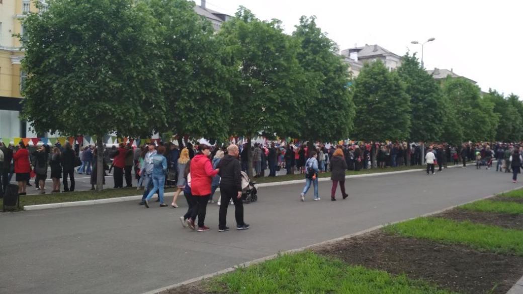 Там собралось несколько тысяч человек — некоторые из них несли символику «ДНР».
