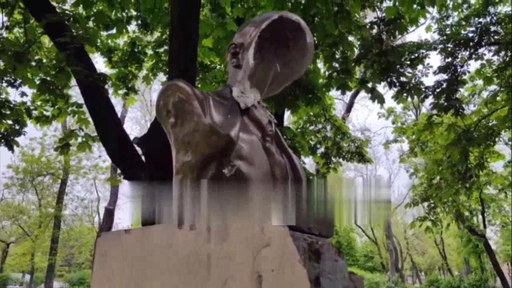 Как рассказали мариупольские паблики, в Мариуполе неизвестные разбили бюст российского революционера, установленный в Городском саду после оккупации города российскими войсками.