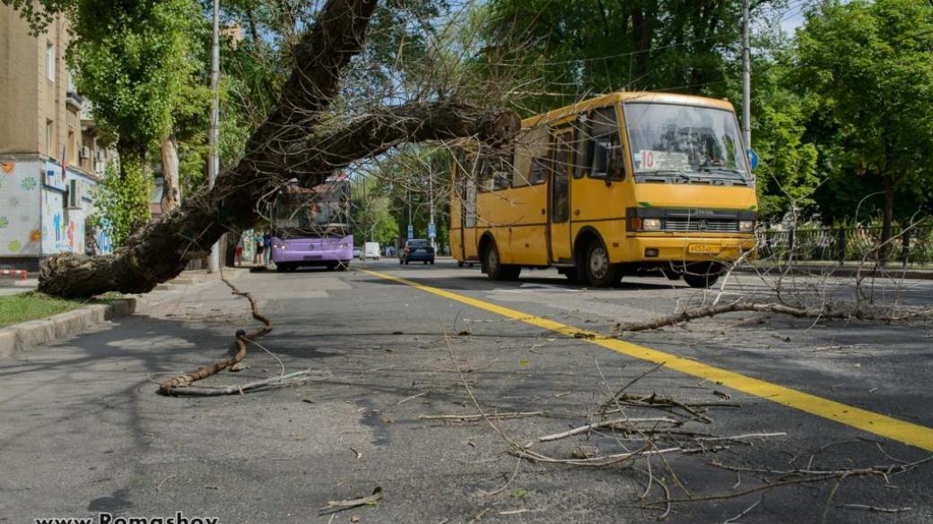 Сегодня около 9:40 в центре неподконтрольного Украине Донецка напротив дома № 38 по улице Университетской на проезжую часть упало дерево. Об этом сообщают местные жители в социальных сетях.