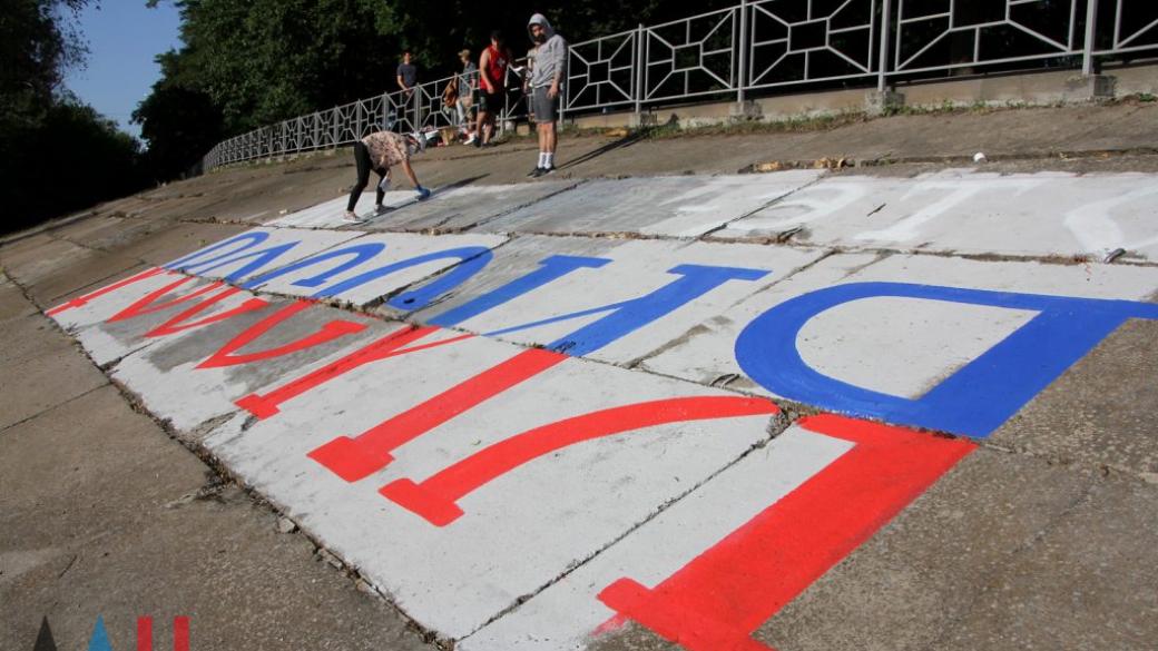 «На бетонных плитах набережной реки Кальмиус со стороны бульвара Шевченко художники нанесли новое граффити. Граффити выполнено в виде надписи „Донбасс — это Россия!“. Буквы нанесены в цветах триколора Российской Федерации».