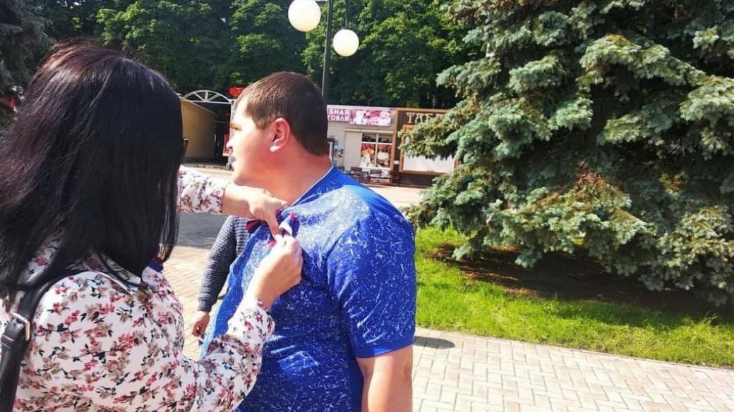 На неподконтрольной украинскому правительству территории Донецкой области активисты местного «общественного движения» провели сегодня акцию «Лента России», приуроченную к официальному празднику Российской Федерации — дню России.