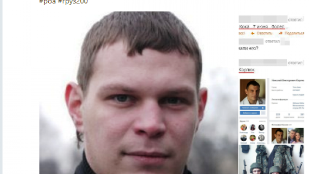 В социальных сетях пользователи сообщили о смерти российского наемника из Москвы Карлюка Николая Викторовича, известного по позывному «Кока».