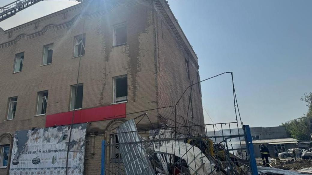 Поврежден торговый комплекс, СТО, учебное заведение и админздание.