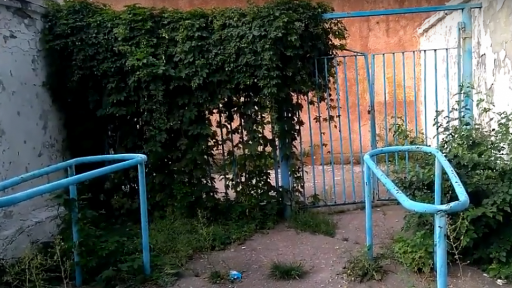 На видео видно, что трибуны стадиона заросли сорняками, ступени разрушены. В относительно ухоженном виде только футбольное поле, на котором иногда проходят тренировки. На заборе, который возведен вокруг стадионе огромные дыры от осколков снарядов. Центральный вход зарос травой, а на главном входе висит замок.