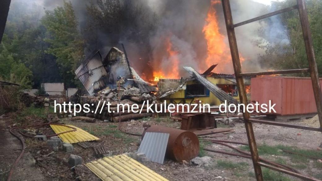 В Калининском районе неподконтрольного Украине Донецка в результате попадания снарядов произошло возгорание склада «ДОТЕХСНАБ» по ул. Сигова, 2а. Об этом сообщает так называемый "мэр" города Алексей Кулемзин.