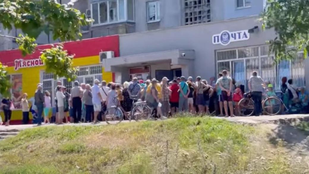 По его словам, в захваченном городе везде наблюдаются очереди, захватчики нигде не могут наладить процесс и люди вынуждены стоять часами даже в очереди в обычный магазин.