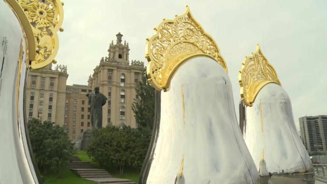 Напротив гостиницы «Украина» в Москве появились матрешки в золотых кокошниках и с намеком.