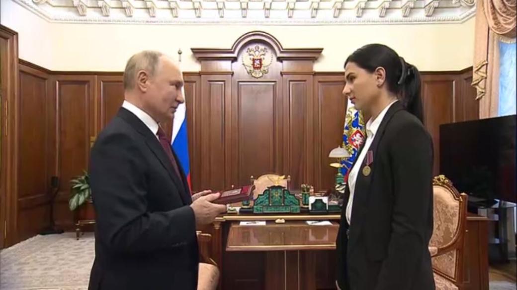 Путин лично передал дочери Ольги Качуры "звезду героя России", присвоенную ее матери посмертно.