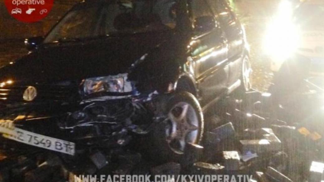 Вчера вечером в центре Киева, на улице Грушевского, легковой автомобиль врезался в памятник героям Небесной сотни.