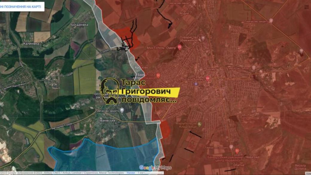 По информации ТГ-канала Тарас Григорович повідомляє, россияне продвинулись на юге города Бахмут, в районе дач, заняли бывшую воинскую часть. Здесь враг задействовал отряд "Камертон" спецназа "Ахмат", состоящий из бывших бойцов ППК "Вагнер".