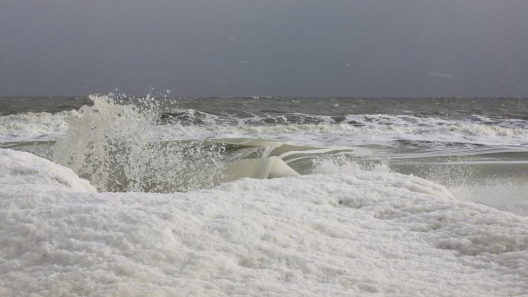На видео показано побережье Кирилловки где видно, что вода уже наполовину состоит изо льда, поэтому волны едва колышатся.