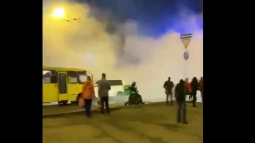 На выложенном видео видно, что вся прилегающая территория возле ТРЦ и станции метро «Лыбедська» окутана паром от горячей воды. Внутри торгового центра залит паркинг и минус первый этаж.