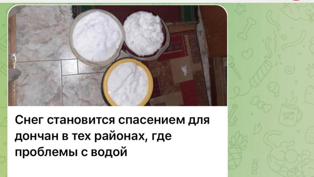 Жители ряда районов оккупированного россией Донецка, которые за время "русского мира" забыли о том, что такое нормальное водоснабжение, после выпадения снега собирают его и топят, чтобы использовать талую воду для хознужд.