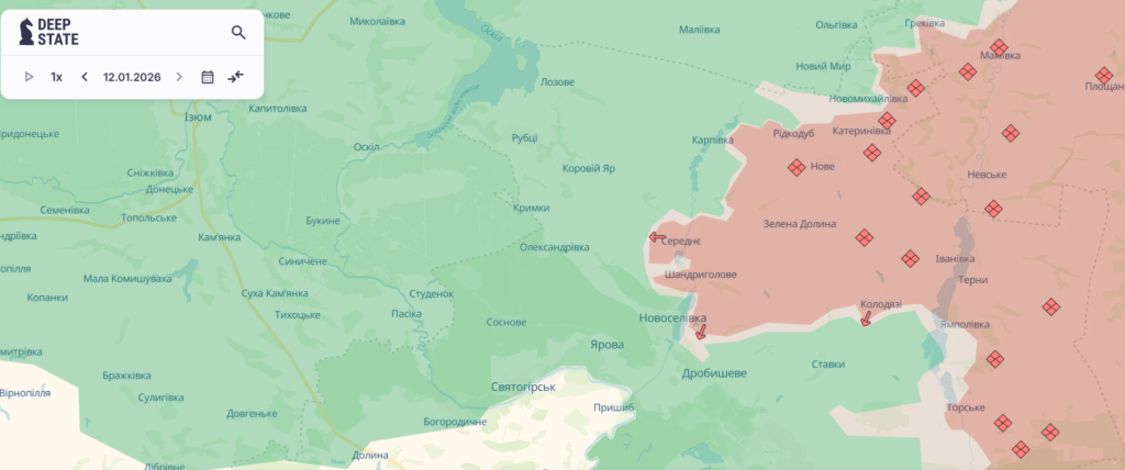 На карте DeepState село Шандриголово Лиманской территориальной общины значится как оккупированное.