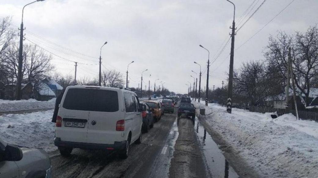 «8:44. Еленовка в сторону Новотроицкого. Стоим на месте уже час. До синих будок общая, штук 80»;