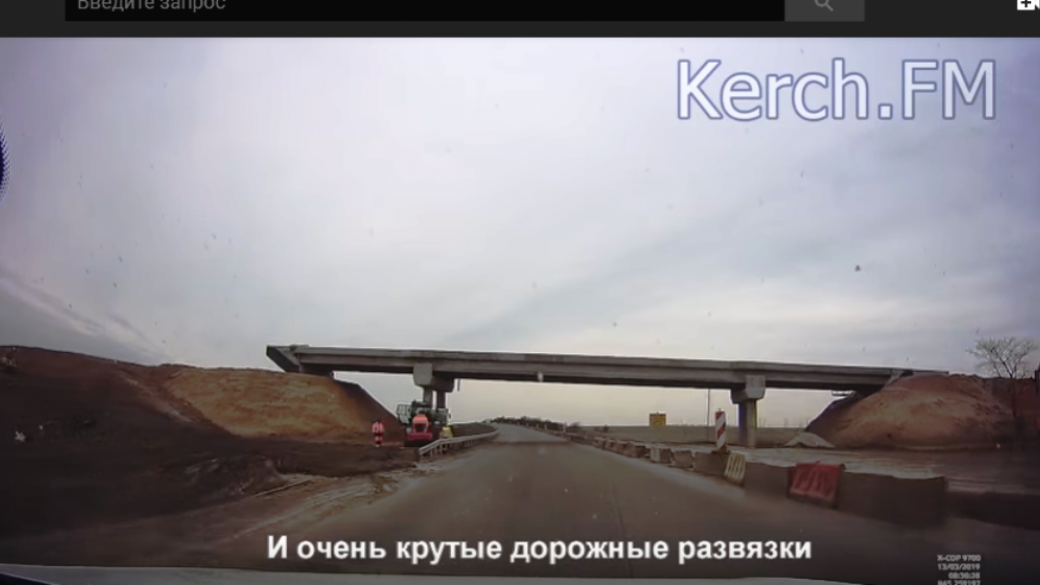 На видеозаписи видно, что в местах примыкания к элементам мостовых переходов дорога на трассе «Таврида» просела. Сми отмечают: