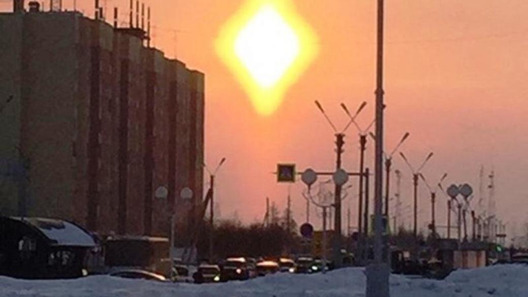 В России над российским городом Новый Уренгой взошло солнце в форме ромба.