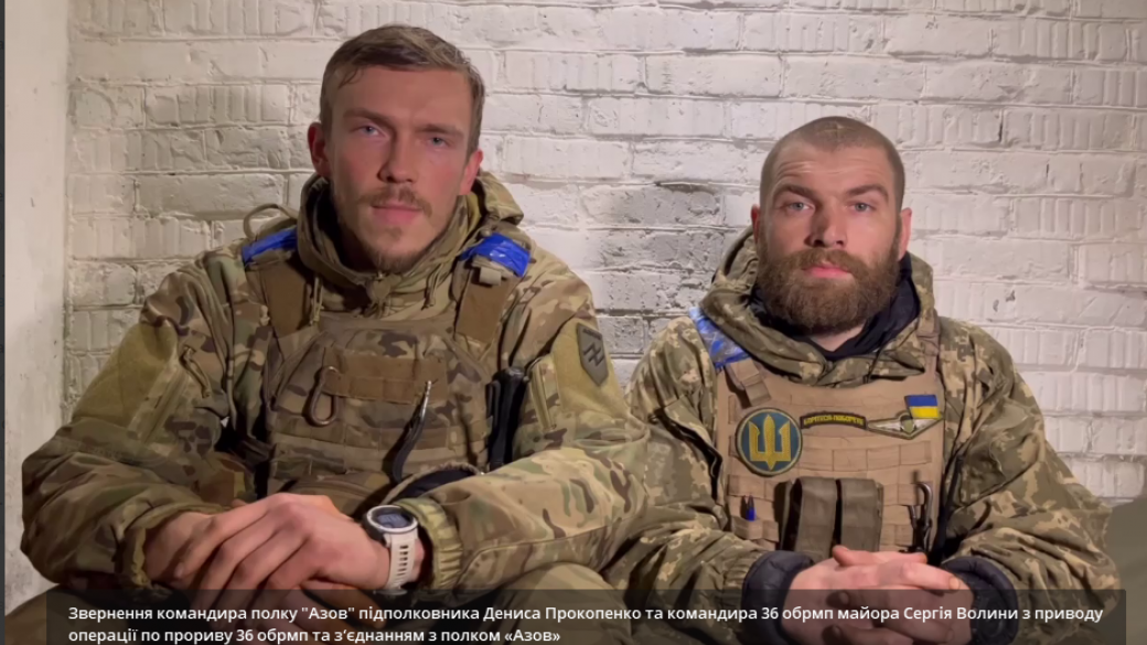 «Вчера мы объединились с достойными бойцами из батальона морской пехоты — настоящими воинами, героями, которые остались верные присяге, верные украинскому народу, и дальше продолжают оборонять с нами город. Это настоящие мужчины, которые выбрали путь войны. Не делайте героев из дезертиров и бойцов, которые добровольно сдались в плен. Они выбрали путь позора. Ни в коем случае этих людей героизировать не стоит».