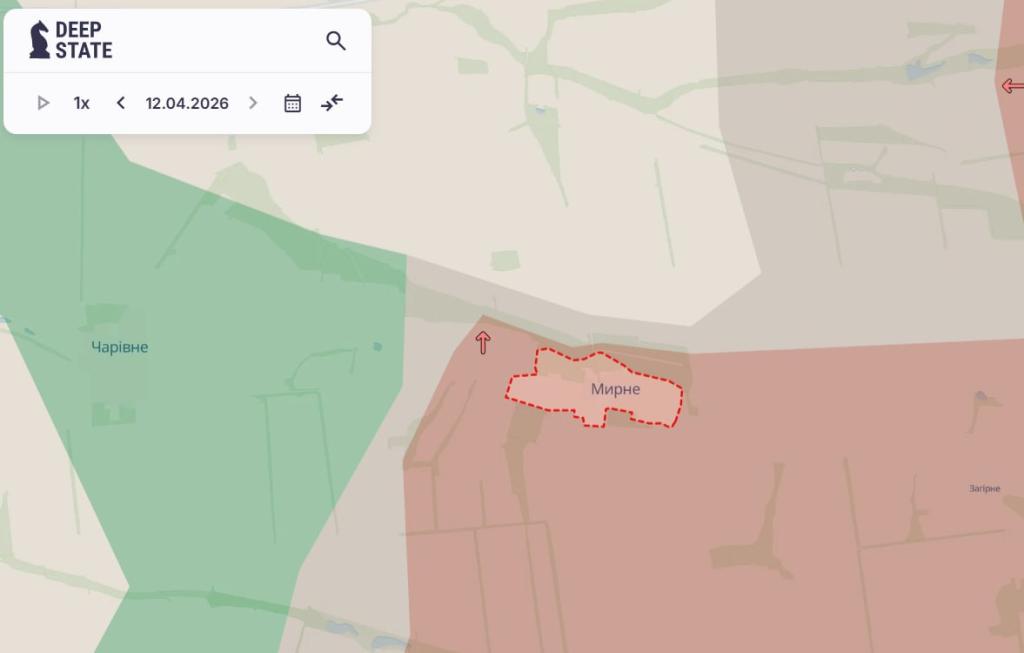На карте DeepState, по состоянию на 12 апреля, Мирное обозначено как оккупированное.