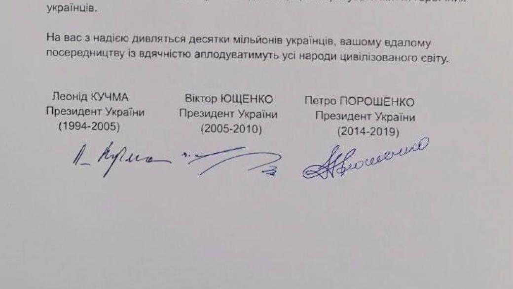 Ввторой, третий и пятый президенты Украины — Леонид Кучма, Виктор Ющенко и Петр Порошенко, обратились к главам стран мира. В государства-члены Европейского Союза, Соединенных Штатов Америки и Канады, Китая, Турции и других, а также в ООН.